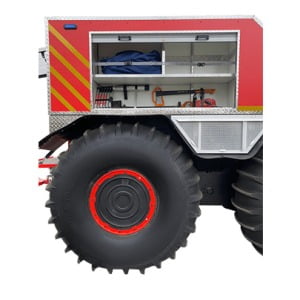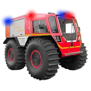 SHERP Firefighting UTV is a versatile vehicle for fighting fires in most inaccessible terrains. It has high off-road capability and autonomy, the UTV’s tires are equipped with a cooling system, allowing to drive over burning areas. The vehicle is capable of carrying up to 660 gallons of water and pumping water from any open source available. High maneuverability of the SHERP Firefighting UTV makes it very efficient in fighting wildfires.